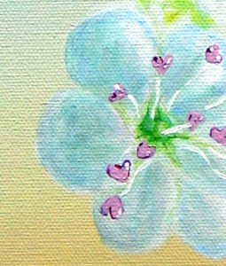 Dans la tradition des plantes médicinales, l'aubépine est "bonne pour le cœur" . Christelle traduit cette vertu en jouant graphiquement avec les étamines de la fleur. |