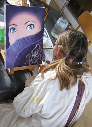 Février 2006, la première peinture à l'huile d'Emeline. |