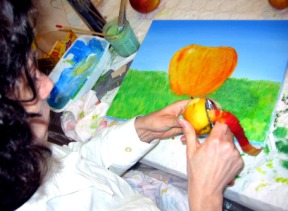 formule nouvelle spécialement adaptée pour : A la différence des ateliers habituels, ou chacun mène son projet personnel et à son rythme, lors de la séance spéciale du samedi après-midi qui est plus longue, on fait tous exactement le même thème, simultanément avec celui de Pierre Marcel. Pierre Marcel fait sa peinture devant nous, et avec nous. On le suit. On court, on ne perd pas de temps, c'est la course et à 18h on est sur les genoux, mais on a chacun sa peinture, trophée bien mérité prêt à être ramenée à la maison ! Chaque étape est expliquée, et l'on passe à la suivante que lorsque tout le monde en maîtrise les essentiels. Tambour battant, on mène son tableau jusqu'au bout, en un déroulement de séquences jamais prévisibles. On n'est pas prévenu du thème final du tableau, c'est toujours une surprise, étapes par étapes. Bien qu'une part d'improvisation et de créativité nous est demandé, on travaille dans un cadre précis, car si le but est de réaliser à chaque fois un tableau "surprise" complet, l'essentiel est d'acquérir des gestes et des techniques précises. Les séances suivantes, on consolide les acquis, et l'on se dirige sur une nouvelle idée, un parcours jalloné de nouvelles découverte et de nouvelles techniques.