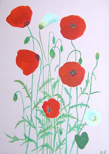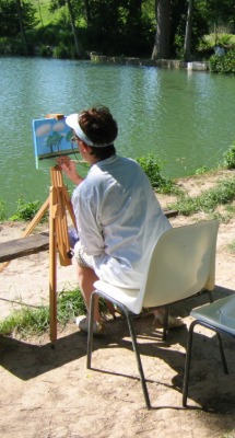 Odile et sa peinture d'Iris, pour le festival du Chateau d'Auvers sur Oise, mai 2006 (Voir la page)