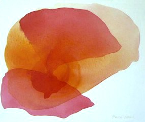 Je répands sur mes toiles des flaques de peinture plus ou moins diluée, les fait glisser en tous sens, très doucement, afin d'obtenir une allure de pétale. Le soleil m'est un allié, évaporant rapidement ces lagunes de liquides rouges. Je répète ces opérations jusqu'a ce que l'idée de la fleur me semble posée.