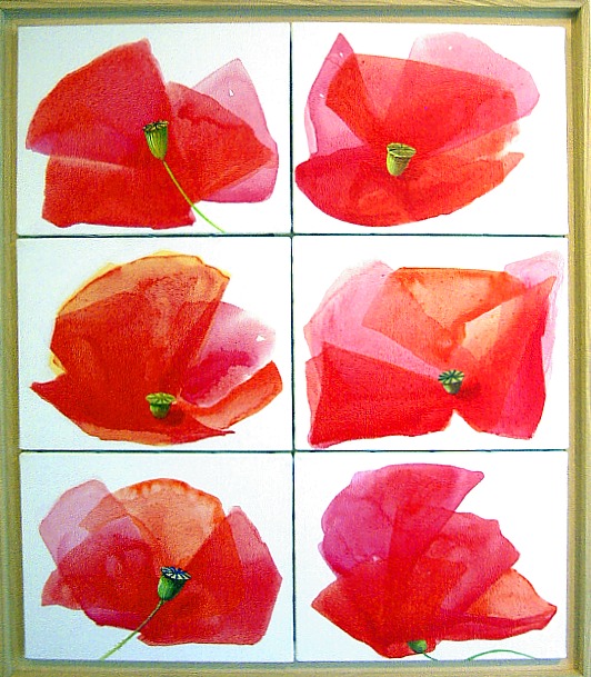 Les semaines passant sur ce travail, il devient moins important de "réussir" un coquelicot, que de juste être bien avec la couleur, sa transparence, son dessin  .