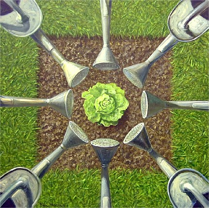 d'arrosoirs bien disciplinés, comme une armée, la salade
