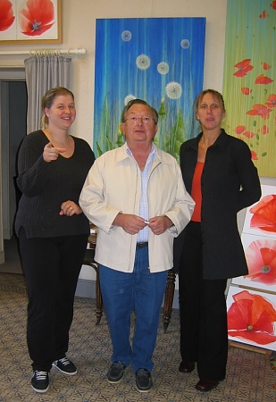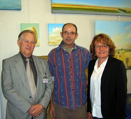 Monsieur Jean-Pierre Mantel, président de l'office de Tourisme d'Auvers et donc "l'employeur bénévole" d''Hélène (à gauche) et de Christelle (à droite) |