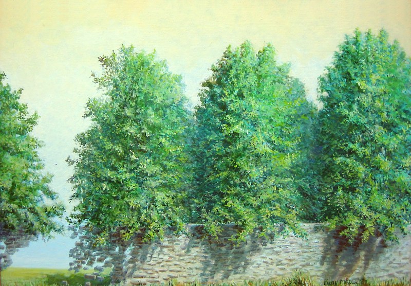In Guerny, the village next to mine, very tall "tilleuls" grow above a wall. I painted the illustration of the say about the shadow: here the stones from the wall are flaotting in the shape of the shadoow casted by the tree |